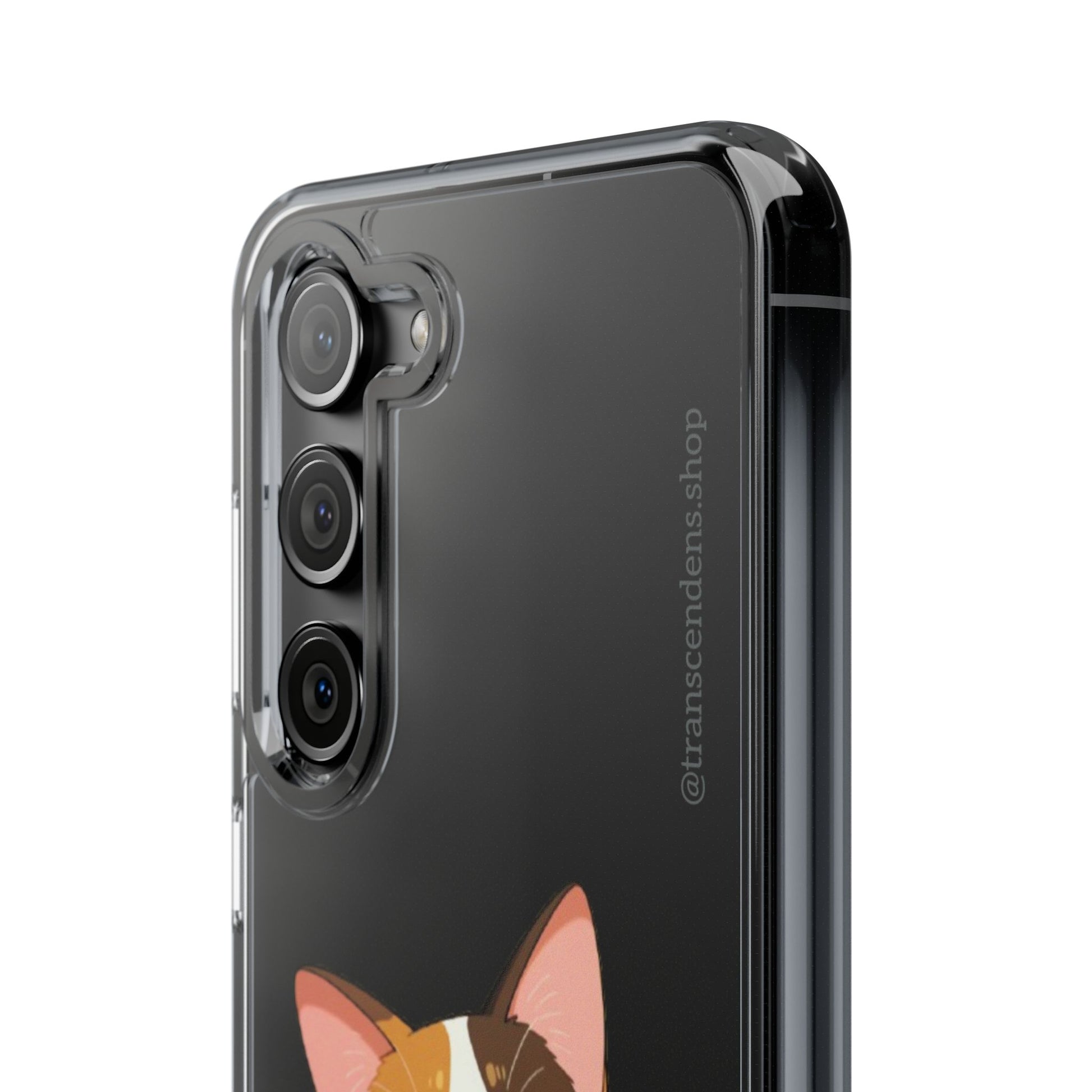The Transcendens Calico Cat clear phone case comes to protect both your phone's surface and its aesthetics. The crystal clear polycarbonate case is flexible, crack and chip-resistant, as well as co-molded with TPU cushioned edges on the side for extra peace of mind. This gives protection against scratches and minor bumps while still keeping your phone's slim profile intact.